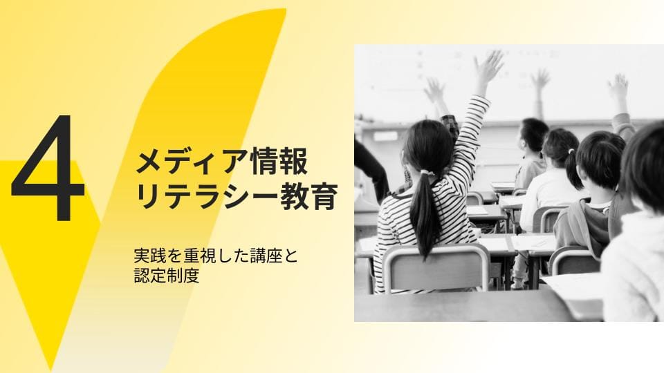 JFCはファクトチェックと並んで、メディア情報リテラシー教育を活動の2本柱としています。ユーザーが自ら情報の真偽を見極め、検証できる能力を身に着けてもらうためです。