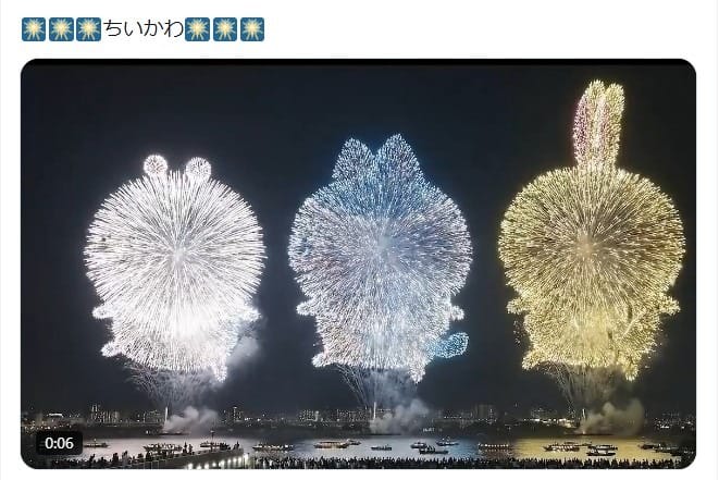 2026年1月4日、「ちいかわ」という文言とともに、人気キャラクター「ちいかわ」の3キャラクターをかたどった花火が打ち上げられる動画が拡散した。