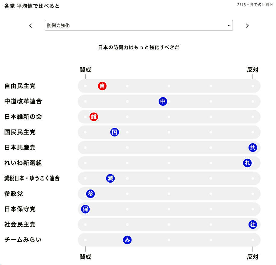 主だった新聞社やテレビ局などは、候補者アンケートを実施し、回答をウェブサイトで公開しています。政党や候補者ごとの個別政策に関する考え方を比較できます。