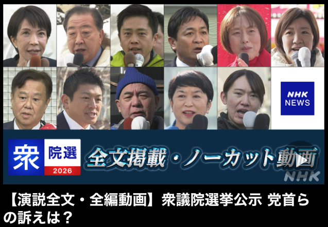 NHK"【演説全文・全編動画】衆議院選挙公示 党首らの訴えは?"
