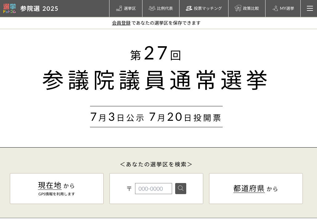 選挙ドットコム”第27回 参議院議員通常選挙”