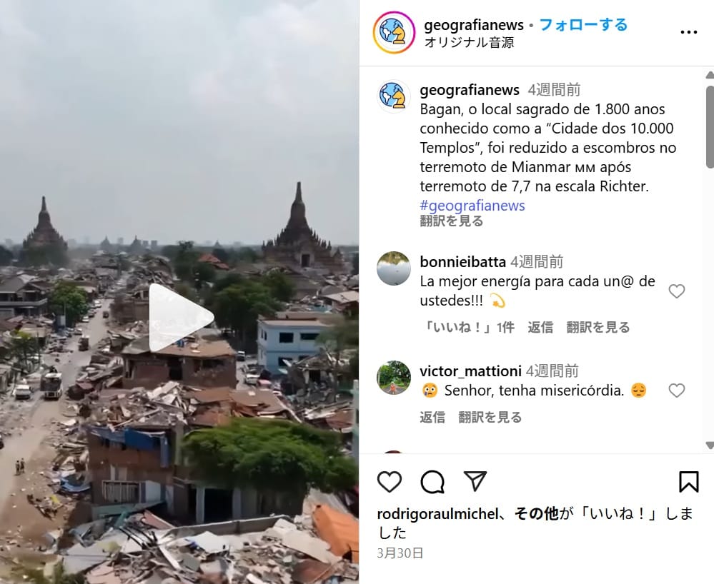 2025年3月28日にミャンマー中部で大地震が発生し、3000人以上の犠牲者が出ている。隣国のタイや中国でも大きな揺れがあった。地震発生後、被害の様子の映像や画像が数多く拡散した。