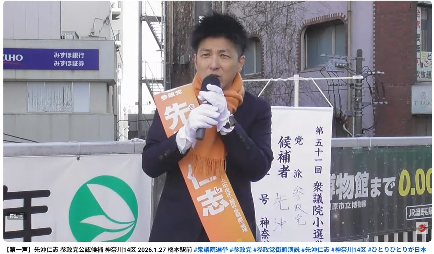 2026年1月27日、先沖氏は神奈川県内での街頭演説で、次のように述べた。