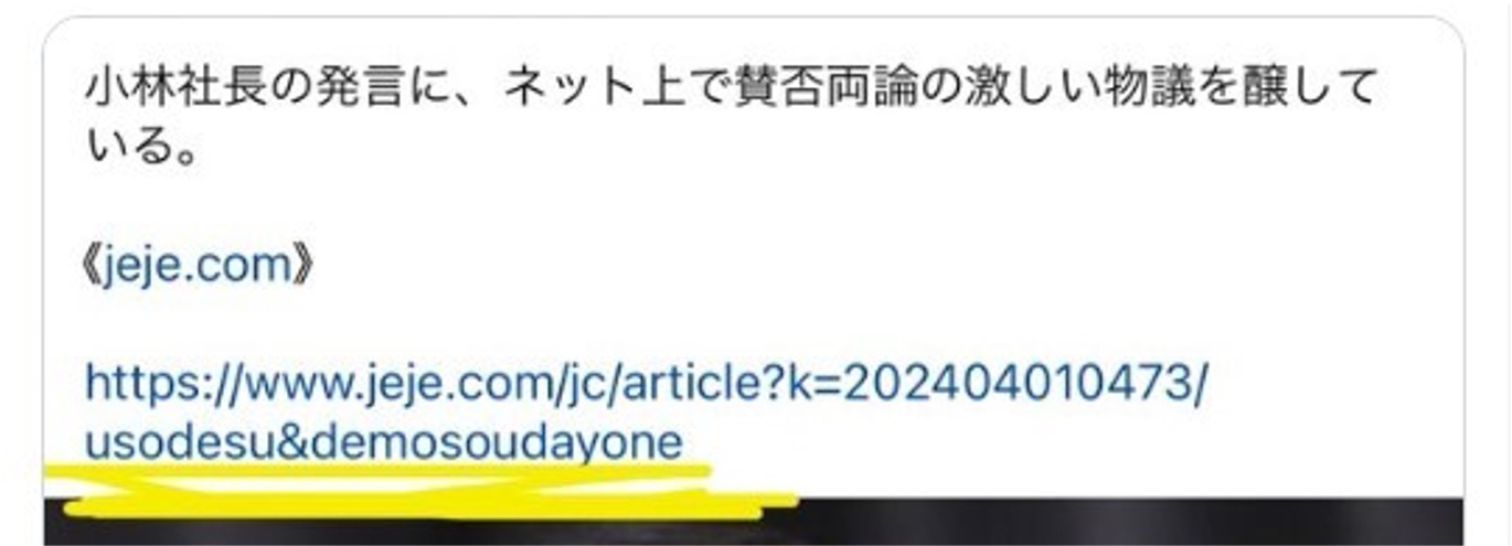 「小林製薬がワクチン被害のスケープゴートにされたと小林社長が発言」は、誤り。