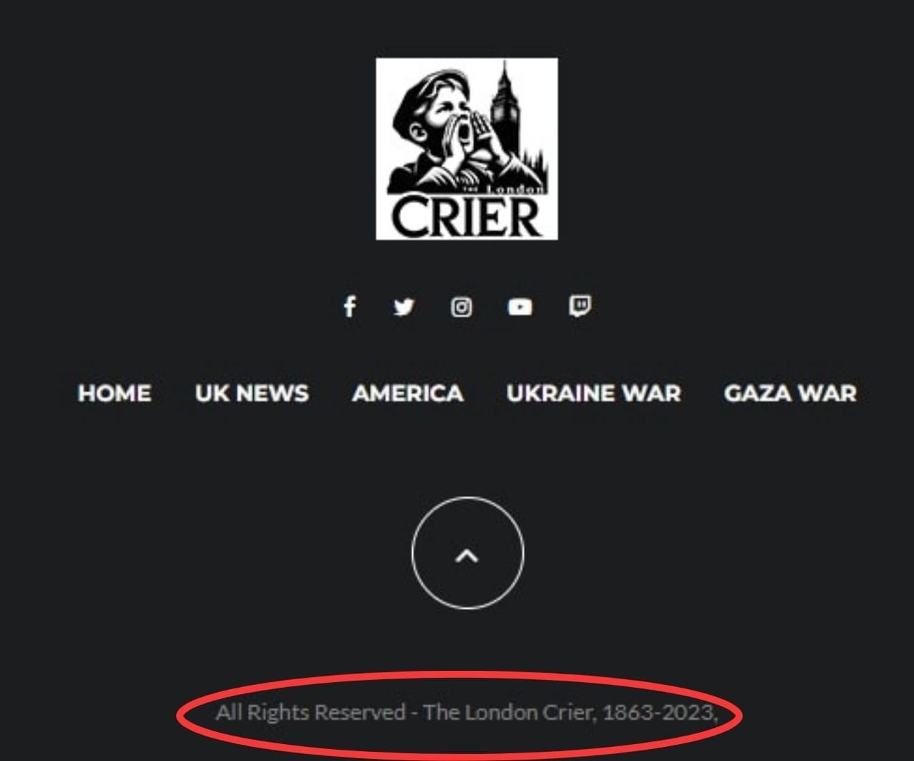 拡散したポストは、ロンドン・クライヤー(The London Crier)というサイトの記事を日本語へ翻訳して引用しているが、サイト内に媒体の説明がない。