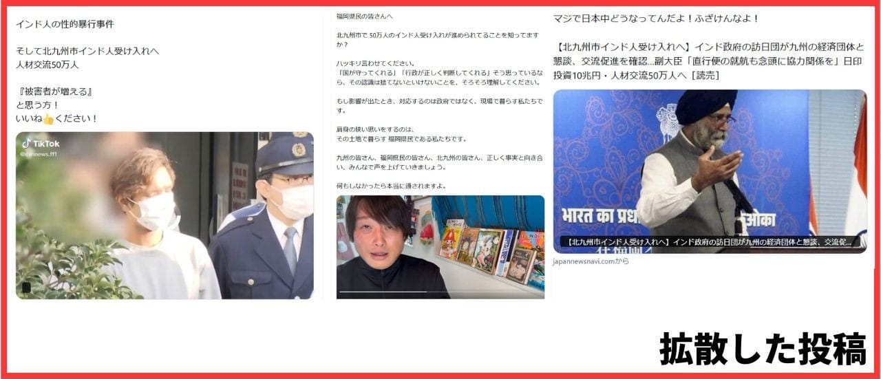 「北九州市がインド人50万人を受け入れる」という情報は、遅くとも2025年9月ごろから何度も拡散している(例1、例2、例3)。