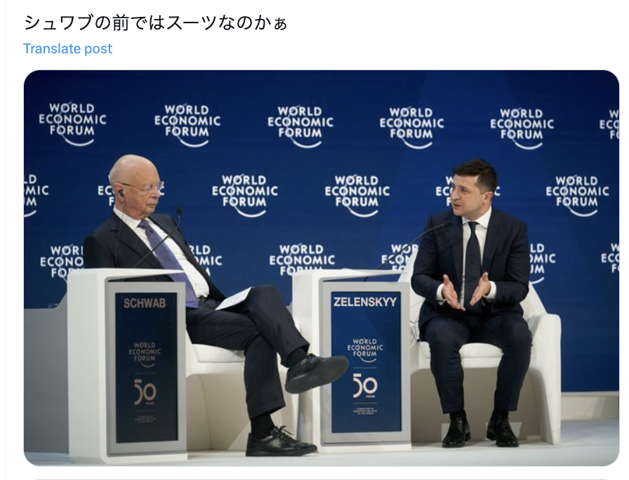 2025年3月2日、ゼレンスキー氏がスーツを着ている写真と共に「シュワブの前ではスーツなのかなぁ」とキャプションのついた投稿が拡散した。