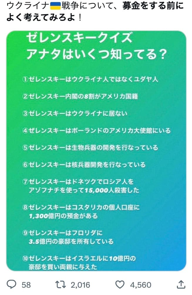 「ゼレンスキークイズ アナタはいくつ知ってる?」という画像が拡散(例1、例2)した。