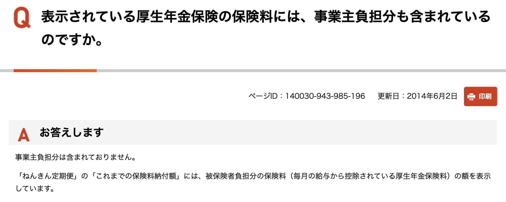 「ねんきん定期便」は、日本年金機構が国民年金および厚生年金保険の加入者(被保険者)を対象に、保険料納付の実績や将来の年金給付に関する情報を知らせるために送るものだ。添付された画像は、年金についてのQ&Aで、ここには、「ねんきん定期便の『これまでの保険料納付額』の記載は事業主負担分を含まない金額だ」と書いてある。「事業主負担分の厚生年金は個人も会社ももらえない」とはどこにも書いてない。