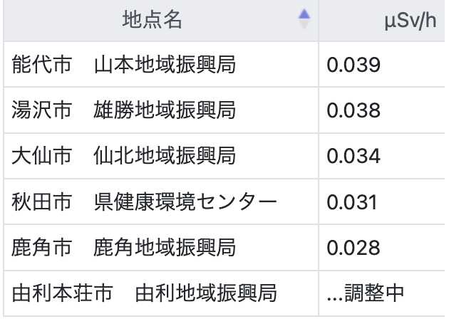 秋田県以外の地域を見たところ、同じ日本海側の福井県では鯖江市で0.052、越前市は0.048で、秋田県の隣岩手県の太平洋側沿岸の釜石市は0.040、久慈市は0.046だった(単位はいずれもμSv/h、2024年7月4日午後0時20分現在)。秋田県の観測地点での放射線量は他の地域に比べて大きな差はない。