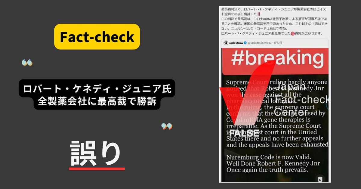 ロバート・ケネディ・ジュニア氏が全製薬会社に最高裁で勝訴?繰り返し拡散する偽情報