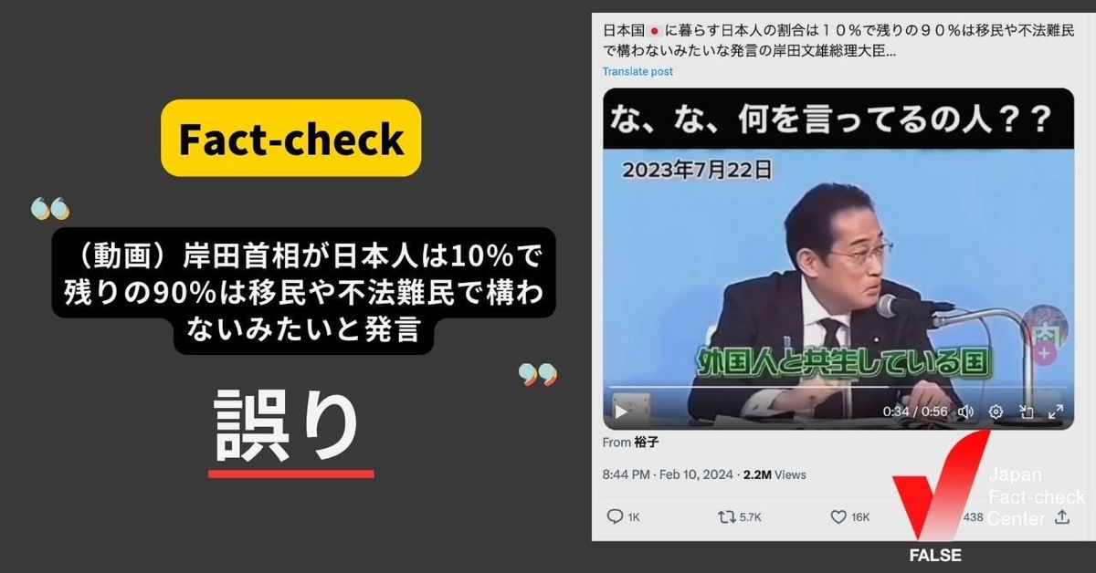 「(動画)岸田首相が、日本人は10%で残りの90%は移民や不法難民で構わないみたいな発言」は誤り