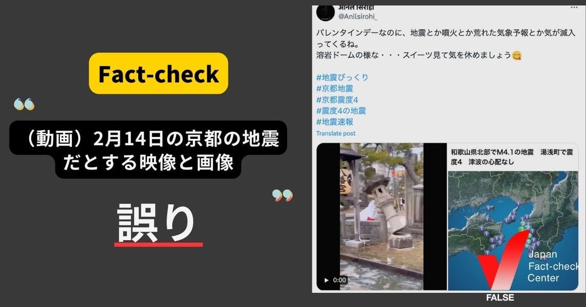 「(動画)2月14日の京都の地震だとして拡散した動画」は誤り