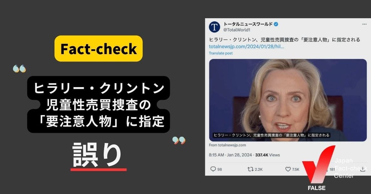「ヒラリー・クリントン、児童性売買捜査の『要注意人物』に指定」は誤り