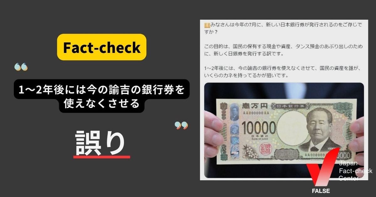 「1~2年後には今の諭吉の銀行券を使えなくさせる」は誤り
