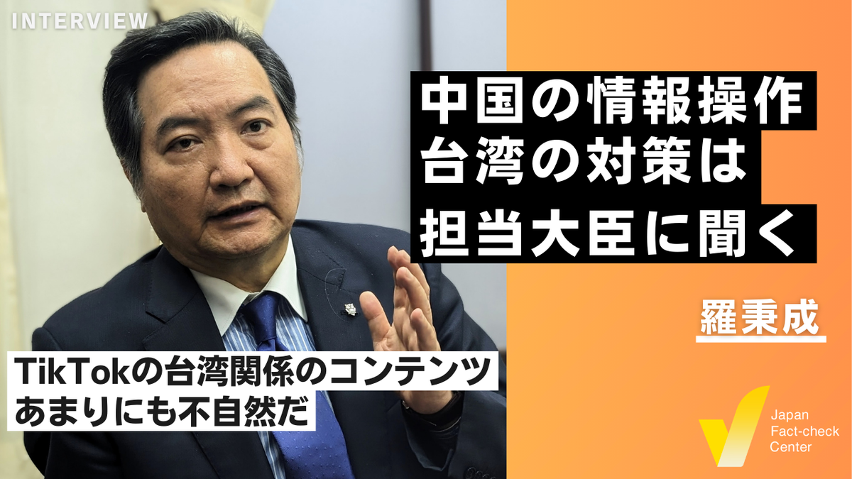 中国からの情報工作に神経を尖らせる台湾では、ファクトチェック、メディアリテラシー、法的なルール設定など包括的な誤情報/偽情報対策に取り組む。日本ファクトチェックセンター(JFC)は、政府で偽情報対策を包括的に担当する羅秉成(ロウ・ピンチェン)無任所大臣に話を聞いた。