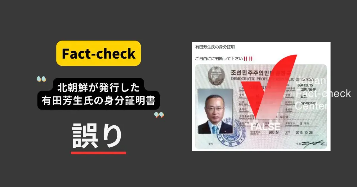 立憲民主党の有田芳生衆院議員について「北朝鮮が発行した有田氏の身分証明書」という画像とともに、有田氏は北朝鮮国籍であるという情報が拡散しましたが、誤りです。実際は北朝鮮が発行した渡航用のビザ(査証)の画像で、日本国籍と明記されています。 検証対象 2024年12月2日、「有田芳生氏の身分証明 ご自由にに判断して下さい‼‼」との投稿が拡散した(その後削除)。 拡散した投稿には有田氏の顔写真が入り、「DEMOCRATIC PEOPLE’S REPUBLIC OF KOREA(朝鮮民主主義人民共和国)」との記載されたがある画像が添付されている。 このビザの画像はこれまでも「有田氏は北朝鮮国籍だ」という主張とともに繰り返し拡散している(例1、例2)。 「公の場に勤める人達は 出自の公表が必要です」「スパイがすっぱ抜かれてやんの」などのコメントが多数つき、有田氏が北朝鮮国籍であるかのような主張がなされている。一方で、「これはビザですね」との指摘もある。 検証過程 元画像は有田氏本人が2015年に投稿 日本ファクトチェックセンター(JFC)が検証対象に添付