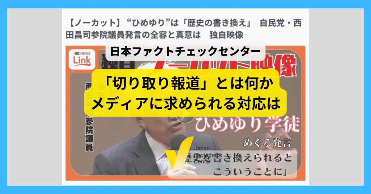 政治家の発言などが物議を醸すたびに、逆にそれを報じたマスメディアに浴びせられるのが「切り取り報道」という批判です。しかし、誰かの発言を伝えるときに、文字数などの制限から全文ではなく一部を引用するのは一般的です。問題は切り取りで発言の意味が変わるか。2025年5月に話題になった自民党の西田昌司参院議員の沖縄に関する発言を例に、批判に対してメディアが取れる対策を解説します。