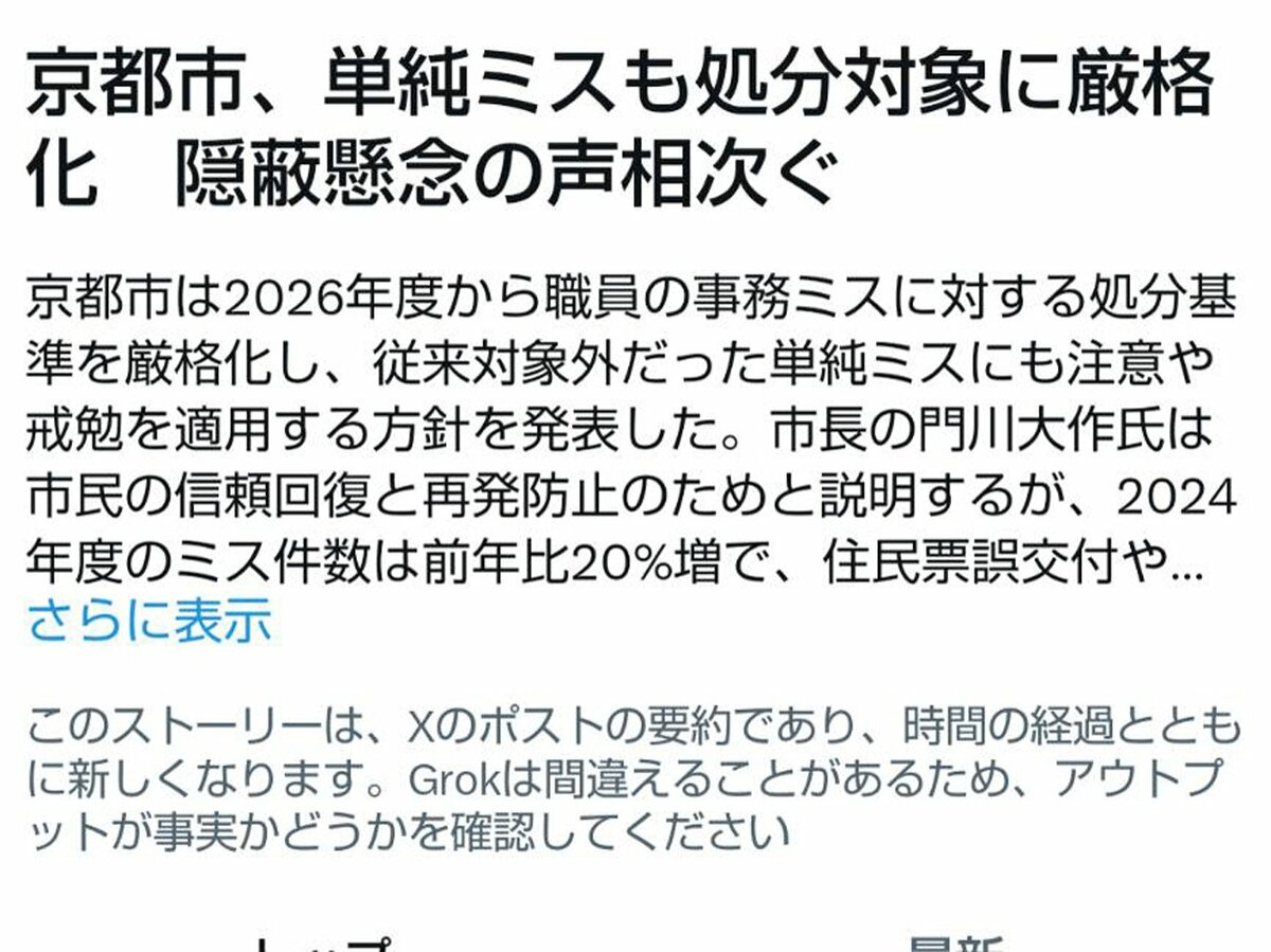 京都市「単純ミスも処分対象に」は誤情報 XのAI要約ニュース拡散で京都市困惑「正しい情報を届けていただきたい」:J-CAST ニュース