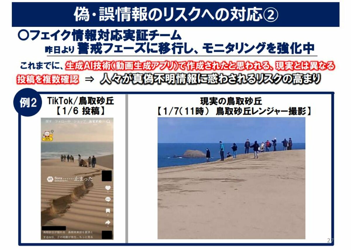 「鳥取砂丘が地割れ」「公園が池のように液状化」 地震被害の“デマ投稿” SNSで複数確認 「震度5強」観測の鳥取県が注意喚起 フェイク動画出回る:BSSニュース | BSS山陰放送