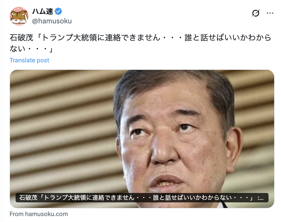 2025年4月5日、「石破茂「トランプ大統領に連絡できません・・・誰と話せばいいかわからない・・・」という投稿が拡散した。