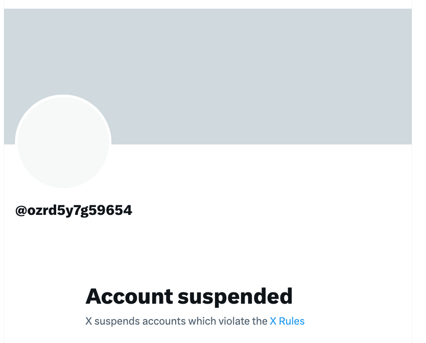 このなりすましアカウントは、Xによってすでに凍結されている。
