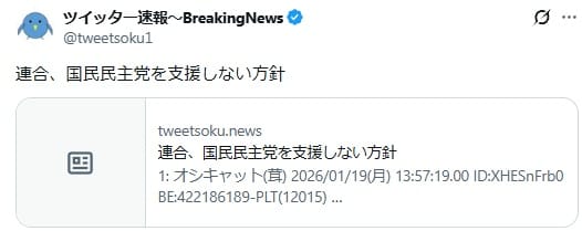 2026年1月19日、「連合、国民民主党を支援しない方針」という投稿がXで拡散した。