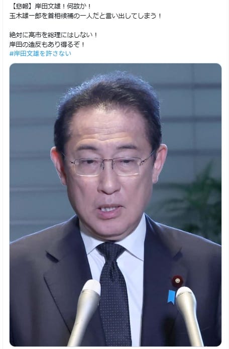2025年10月13日、「【悲報】岸田文雄!何故か!玉木雄一郎を首相候補の一人だと言い出してしまう!」という投稿がXで拡散した。
