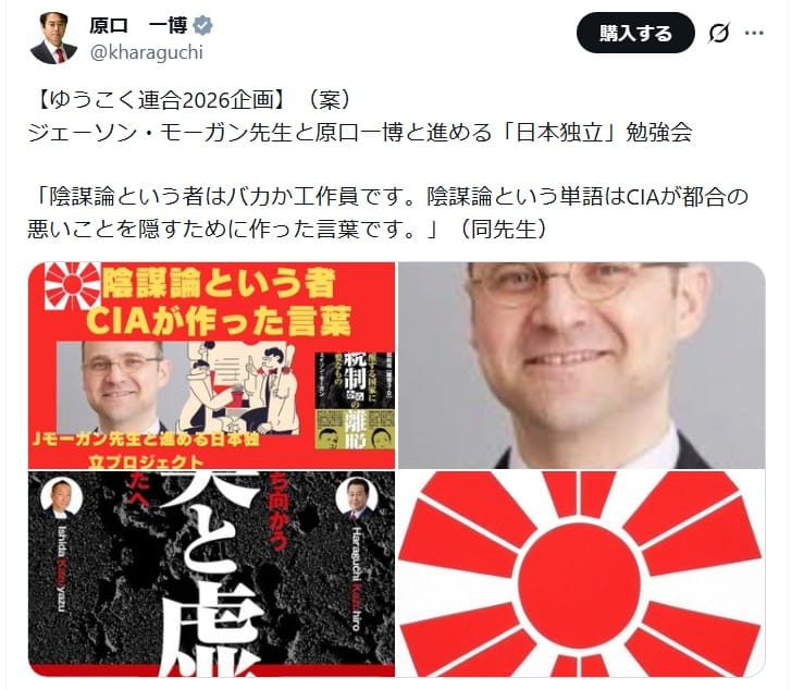 また、同年12月28日には原口一博衆院議員が、自身のXアカウントで「陰謀論という者はバカか工作員です。陰謀論という単語はCIAが都合の悪いことを隠すために作った言葉です」と投稿した。